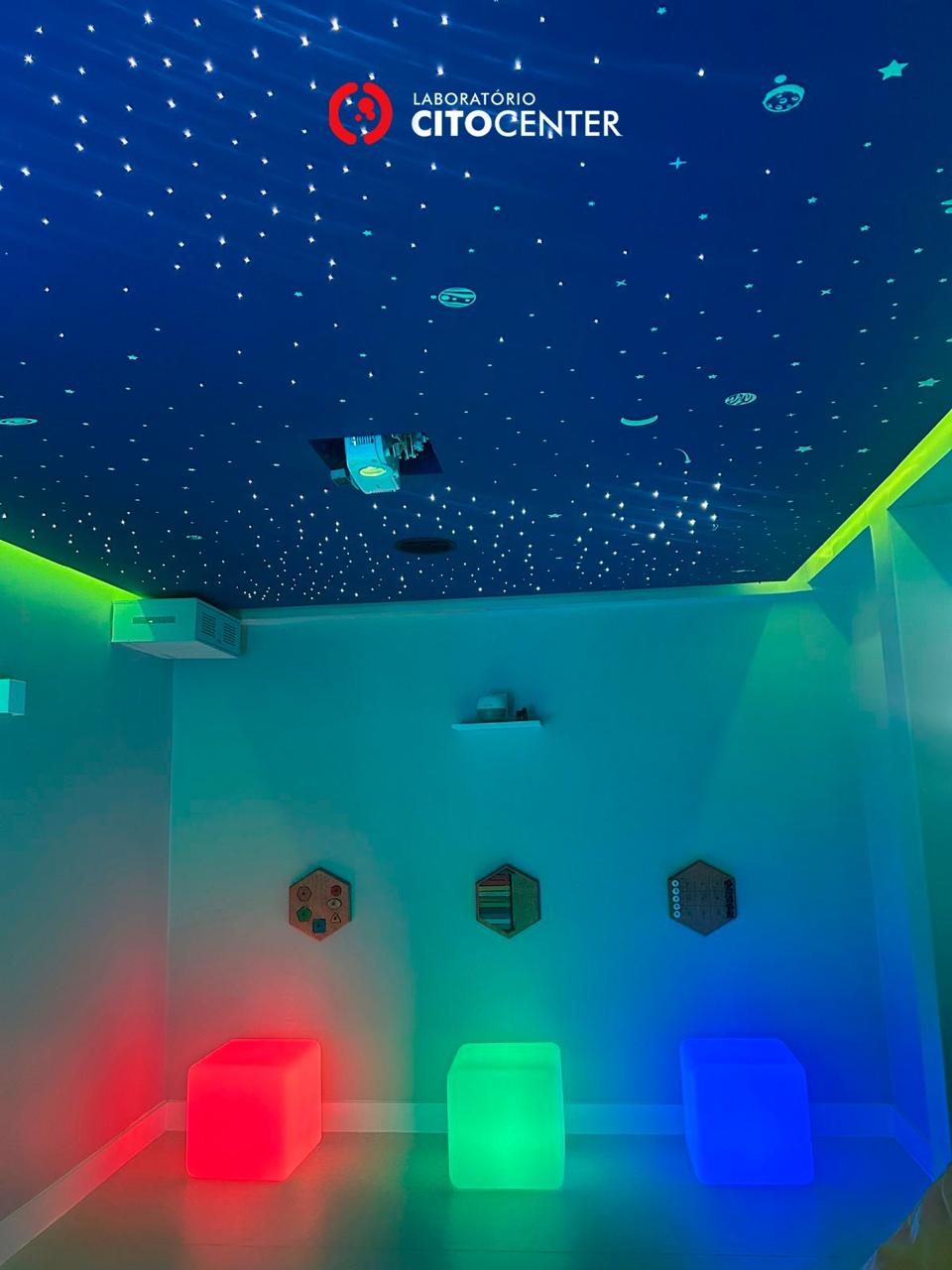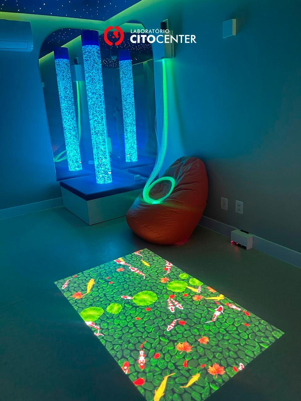 Temos o orgulho de apresentar a Sala Multissensorial do Citocenter. Um espaço inovador, acolhedor e interativo, com sons, luzes, e texturas que proporcionam calma, conforto e uma experiência mais tranquila dos pacientes durante os exames.